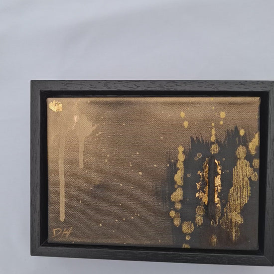 Acrylic, ink, spray, saw dust, bog oak, 23.75ct gold leaf on canvas